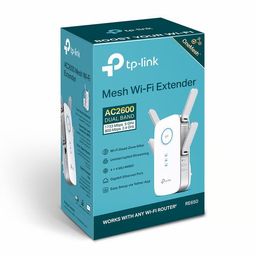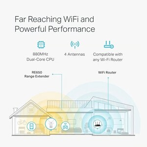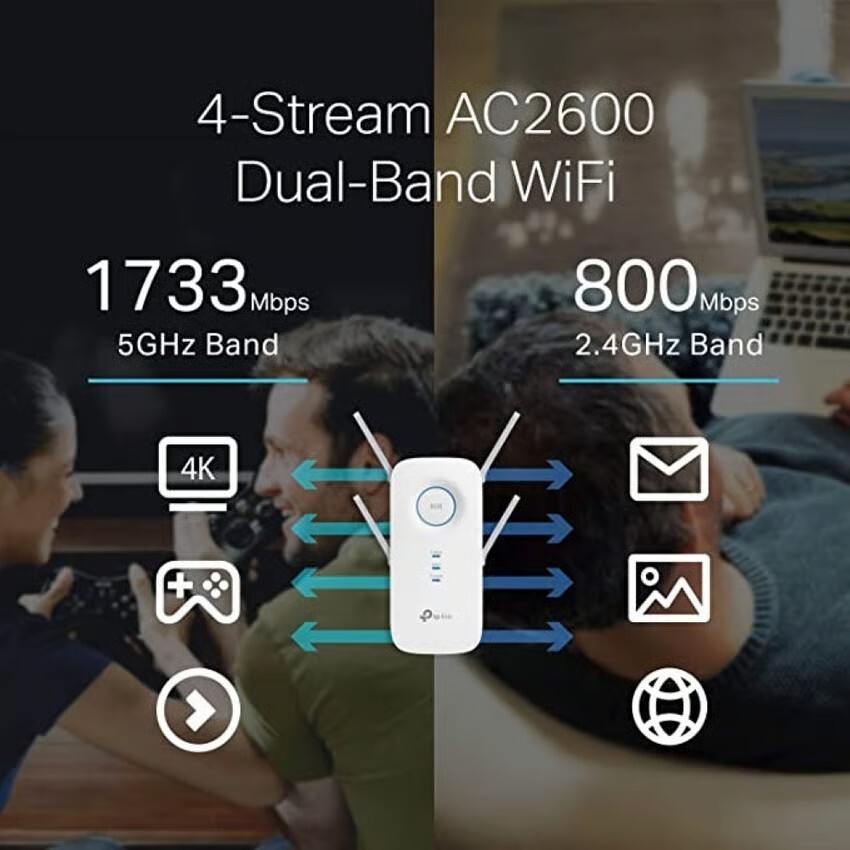 Extend the range of your WiFi network with the RE650 Dual Band, compatible with any type of Router/Gatway/Access Points (2.4GHz 800Mbps / 5GHz 1733Mbps)