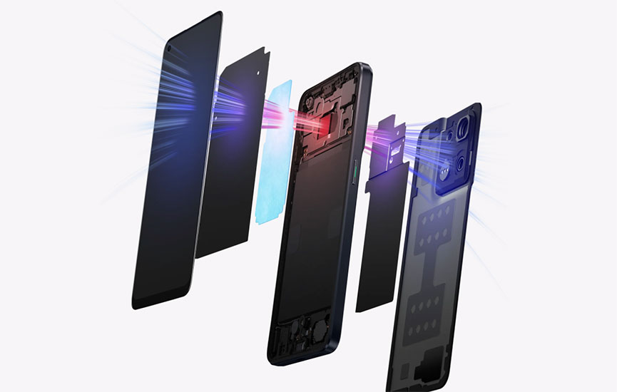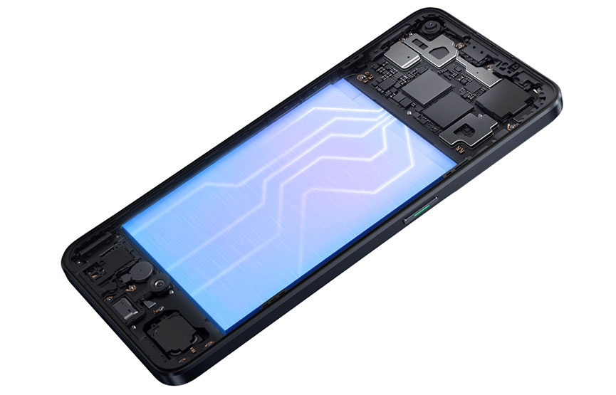 مزيج من الجرافيت فائق التوصيل المتطور والإطار الأوسط وعنصر كبير تحافظ على جهازك باردًا وسلسًا حتى عند ارتفاع درجة حرارة العمل.