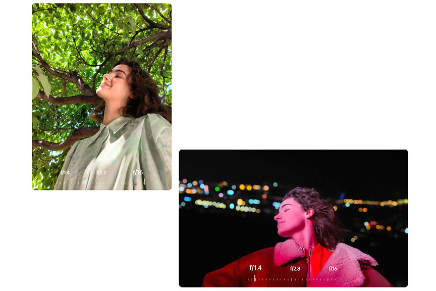 تمتع بالصور السينمائية مع ضبط توهج تأثير البوكيه. يحتوي وضع البورتريه الآن على 22 فتحة لإنشاء مجموعة واسعة من تأثيرات البوكيه.