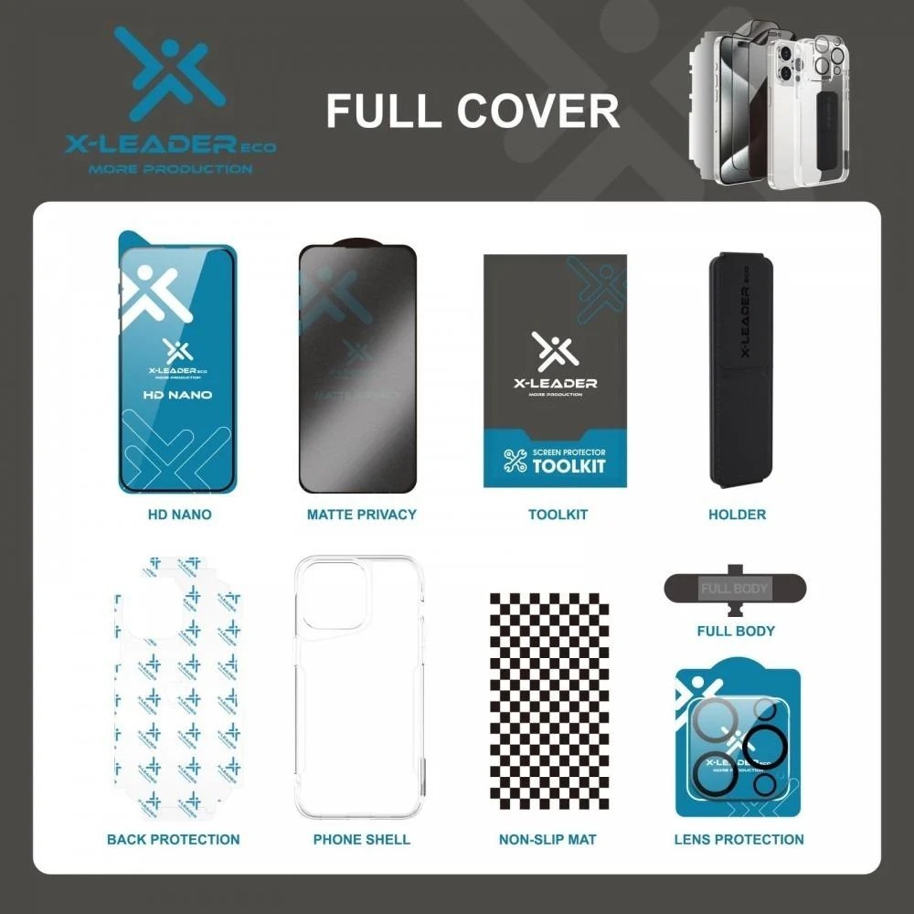 احصل على أقصى حماية لهاتفك مع باكج X-Leader المصمم ليحمي جهازك من الخدوش والصدمات مع الحفاظ على مظهره الأنيق.