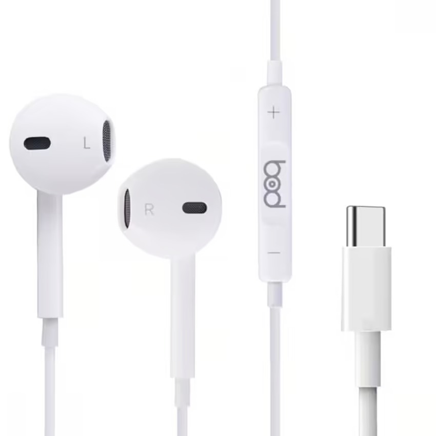 استمتع بصوت نقي وعميق مع سماعة بود الأصلية الموصلة بمنفذ Type-C، المصممة هندسيًا لتناسب شكل الأذن وتمنحك راحة فائقة أثناء الاستماع أو المكالمات اليومية.