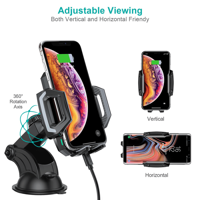 استمتع بقيادة أكثر راحة وأمانًا مع حامل الجوال للسيارة المزود بتقنية الشحن اللاسلكي. يتيح لك تثبيت الهاتف بسهولة وشحنه في نفس الوقت دون الحاجة إلى استخدام الكابلات.
