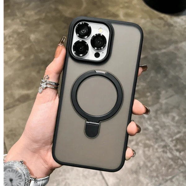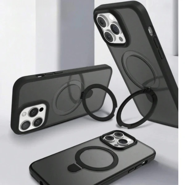 الحلقات الخلفية في هذا النوع من الكفرات تكون قابلة للطي والدوران وتعمل كمسكة لليد أو كحامل للمشاهدة، مع خامات TPU متينة لحماية الهاتف من الصدمات والخدوش.
