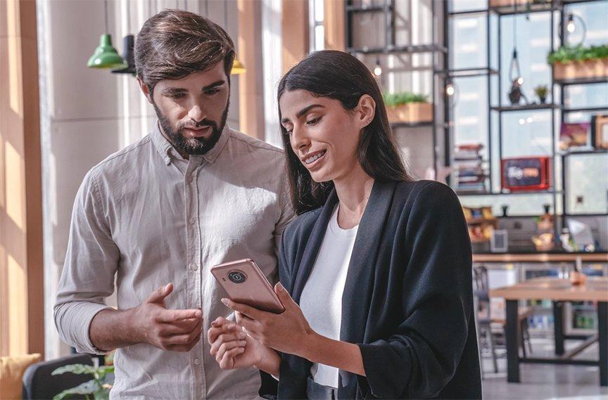 تخلص من التوتر المتعلق بالتحقق من وصول رسائل بريد إلكتروني، كما يمكنك مشاهدة العروض التقديمية والالتقاء بزملائك بفضل شاشة بدقة +Full HD. وعند انتهاء الفترة ما بين التاسعة والخامسة، تلك الشاشة الكبيرة قياس 6.67 بوصة نفسها ستكون مثالية لمشاهدة الأفلام أو الاستمتاع بالألعاب. تخيل ذلك فقط للحظة.