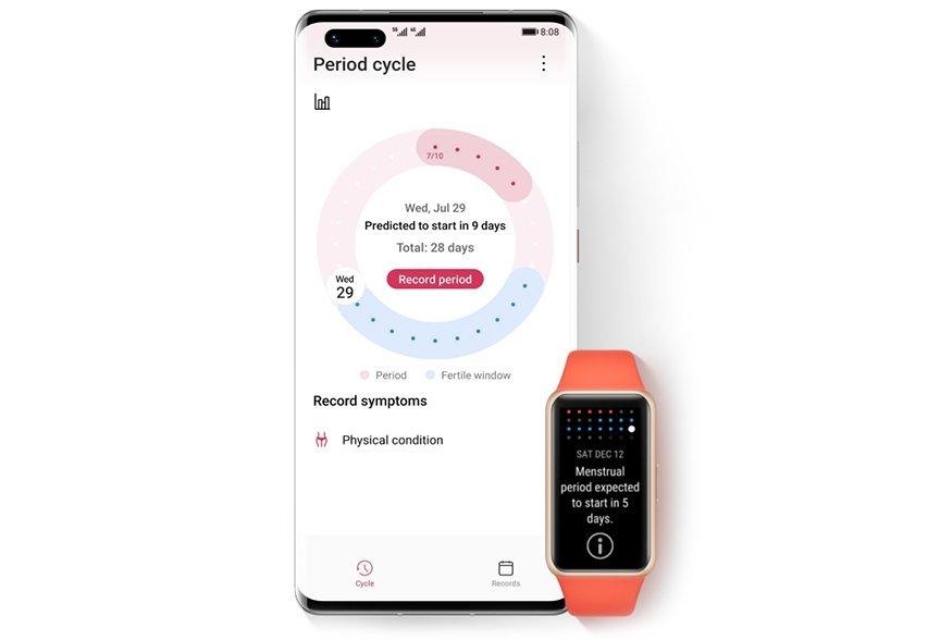 احتفظي بتقويم من السهل التنقّل فيه لدورتك الشهرية مع HUAWEI Band 6. تتيح لك هذه الميزة تلقّي تذكيرات منفصلة وفي الوقت المناسب تنبّهك إلى أن دورتك الشهرية على وشك أن تبدأ. صديق حنون ومفيد على معصمك.