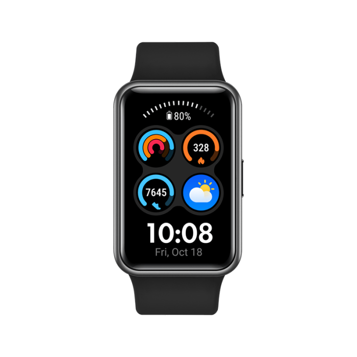 تتميز HUAWEI WATCH FIT الجديدة بشاشة AMOLED مستطيلة رائعة مقاس 1.64 بوصة وبدقة تبلغ 280 x 456 بكسل،2 وتوفّر تجربة مشاهدة فائقة الوضوح بزاوية رؤية واسعة. يوفر ضبط السطوع التلقائي إمكانية رؤية أفضل في ضوء الشمس بينما تتيح لك واجهات الساعة الست المضاءة دومً3 إمكانية التعبير عن أسلوبك الشخصي ومزاجك في أي يوم.