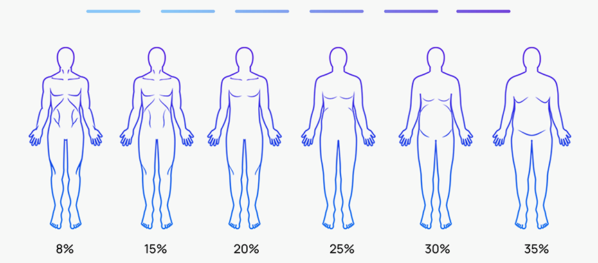 نسبة الدهون في جسمك من أهم المؤشرات الصحية التي يمكنك قياسها. ونظرًا إلى أن الكتلة العضلية أكثر كثافة من الدهون، لن يكون أصحاب الوزن الواحد متماثلين في الشكل ولن يرتدوا مقاس الملابس نفسه بالضرورة. وهذا هو السبب في أن معرفة نسبة الدهون في الجسم أكثر أهمية من معرفة وزنك.