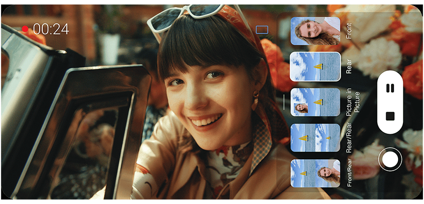 عند تصوير الفيديو بعدسات متعددة، يمكن استخدام الكاميرا الأمامية والخلفية في نفس الوقت، لتحصل على مقاطع مذهلة وأكثر تناغماً لكل ما يدور حولك سواء لأشخاص أو مناظر طبيعية.