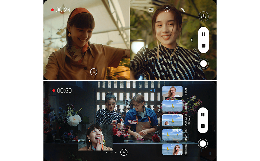 هذه خطوة عملاقة في تطور التصوير الفوتوغرافي بالهواتف الذكية. يمكن تبديل الأوضاع المختلفة لتسجيل الفيديو المتعدد في لقطة واحدة. تسجيل مقاطع الفيديو المتعددة يبسط التحرير اللاحق.