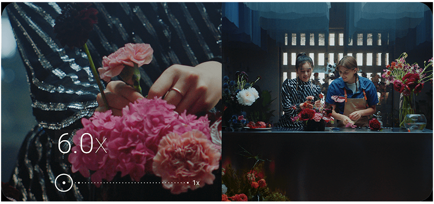 يتيح تسجيل مقاطع الفيديو بعدسات متعددة بالكاميرا الرئيسية إمكانية التكبير حتى 6 مرات (6x) إلى جانب تشغيل الكاميرا بزاوية عريضة في نفس الوقت.