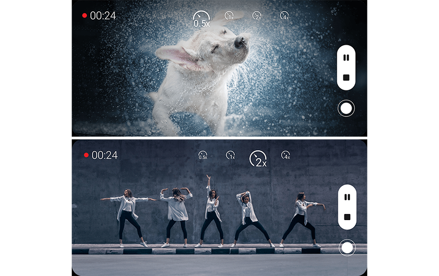 يمكّنك تسجيل مقاطع الفيديو بعدسات متعددة من تصوير فيديو بالحركة السريعة (أسرع مرتين أو 4 مرات) والحركة البطيئة8 (أبطء 0.5).
